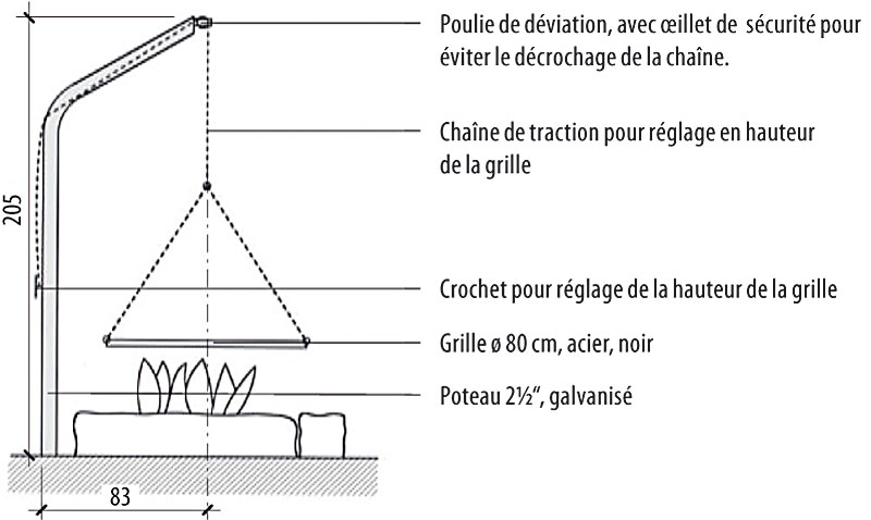 - Chaîne de traction ou treuil compact (réglage facile de la hauteur de la grille)