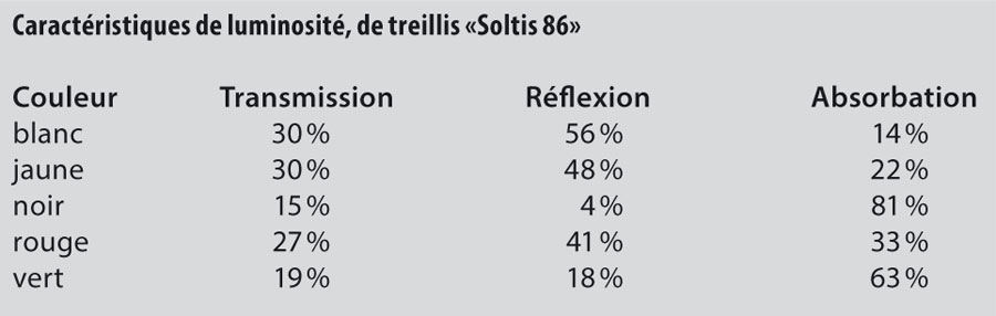 La quantité d’énergie de rayonnement absorbée par le système d’ombrage / toiles solaire et transformée en chaleur. Elle n’est emmagasinée qu’en partie dans la voile et va vers le bas ou le haut en fonction du sens de l’écart de température.