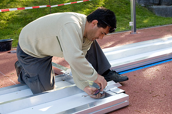 Nos services sur place sont exigés lors des différents produits. C'est notre team de montage lequel est responsable de composer/construire et monter/installer des différents produits, comme par exemple terrains multi-usages, pare-ballon, equipements de sport de plage et matériaux sportif.